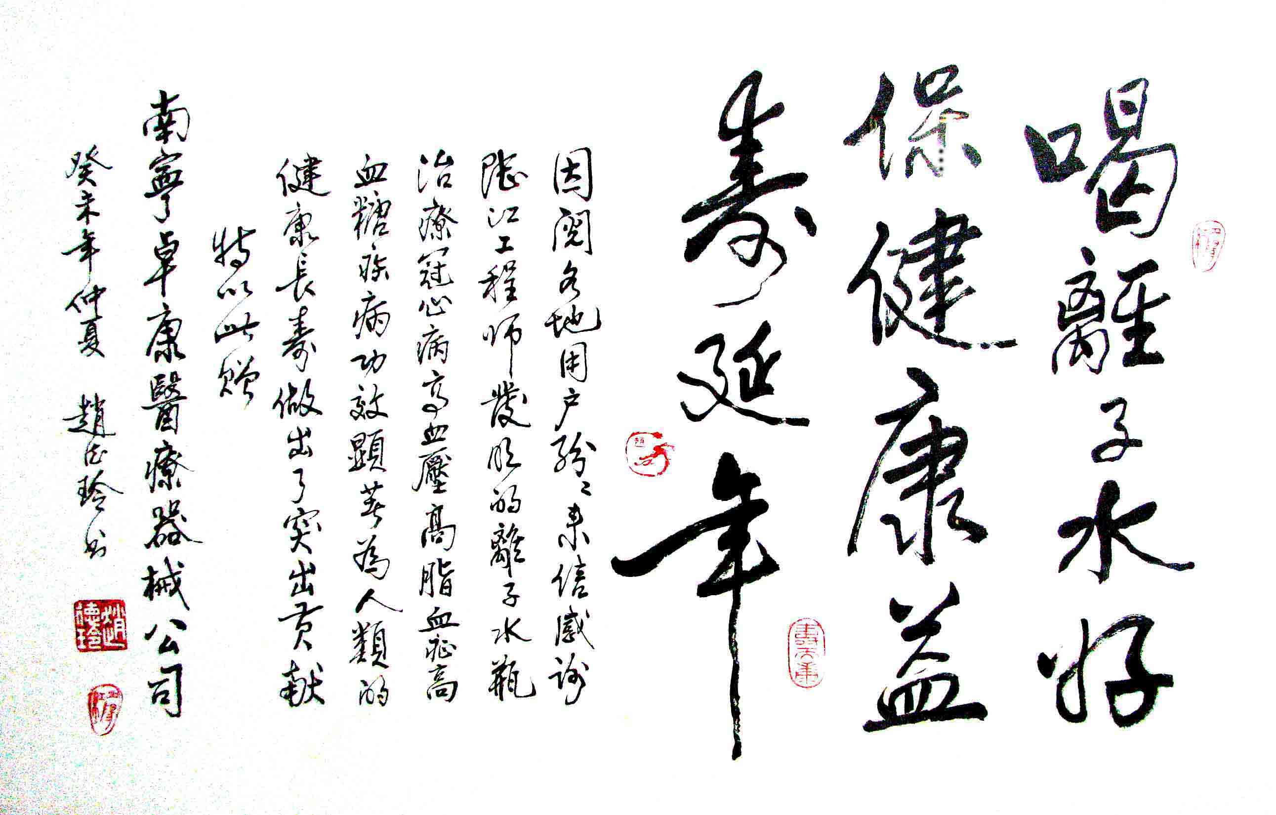 - -----南寧卓康微小水科技有限公司原為南寧卓康醫(yī)療器械有限責任公司 ,用戶普遍反饋高血壓患者飲用2—5個月,癥狀消除,不再服藥,治愈了高血壓; 冠心病患者,包括已做和未做支架或搭撟手術者,經3—5個月飲用,消除心痛、胸悶、早搏、房顫和心絞痛等癥狀,逆轉至消除動脈粥樣硬化和斑塊,一年左右治愈冠心病,心腦電圖正常,經冠脈造影掃描無明顯狹窄,表明冠心病痊愈;糖尿病人飲用3-10個月,血糖尿糖正常,治愈2型糖尿病; 并且使前列腺增生、低血壓、腦萎慢性咽喉炎、慢性氣管炎、支氣管炎、哮喘、矽肺病、甲亢、慢性胃腸炎、膽囊炎、慢性腎炎、腎衰、風濕性關節(jié)炎、痔瘡和濕疹皮炎及中風癱瘓或偏癱失語后遺癥等不藥而愈,且多病同治,無需終生服藥,彌補了幾千年來藥物的欠缺,使“微小水”成為人類消除高血壓、冠心病和糖尿病的寶貴資源。腦動脈粥樣硬化、低血壓和前列腺增生患者,一般飲用四個月痊愈;中風后遺癥患者,一般飲用8個月痊愈。請詳閱《用戶反饋》欄目中大量患者的反饋信、檢測報告,有的還附照片。產品屢獲大獎,論文也屢獲一等獎。廣大用戶好評不斷,有口皆碑。